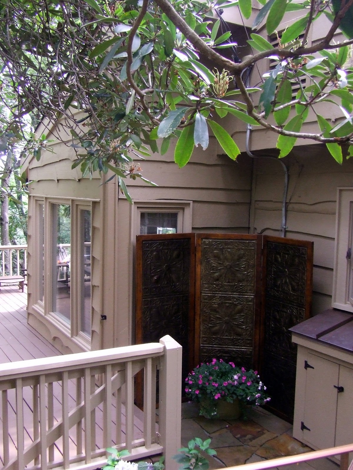 Planters on new lattice....I need to prune that branch that is blocking the 3rd Planter...Friday, before the tour!